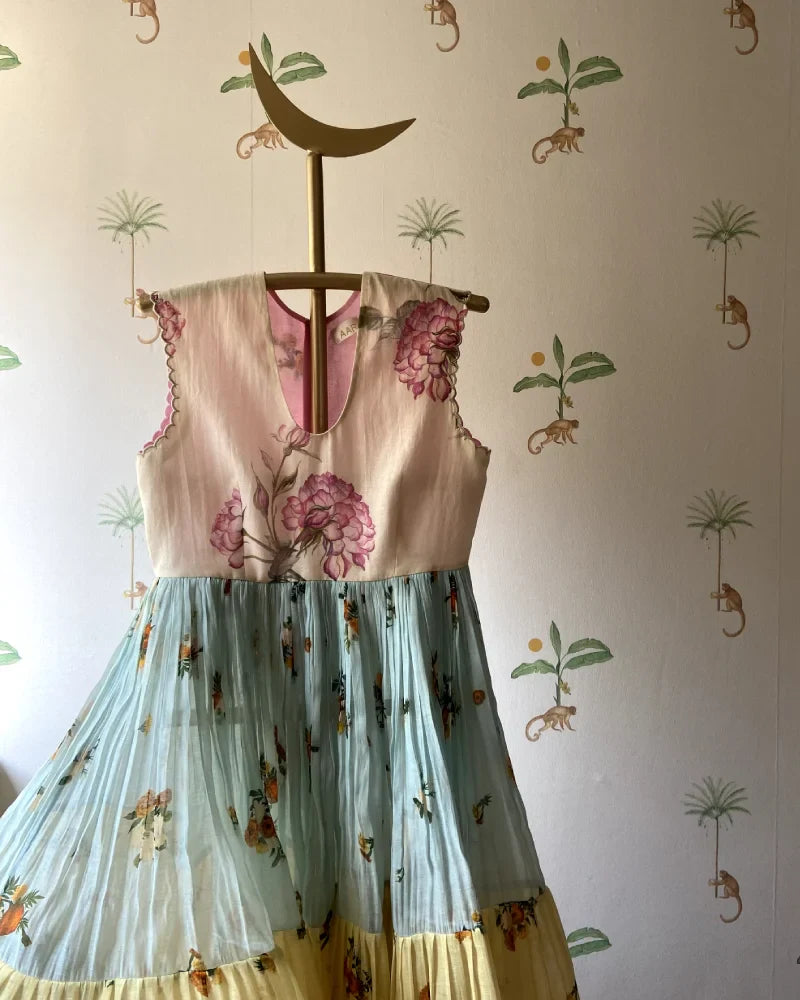 The Cassata Mari Gold and Jasmine Dress has a flare of 6 meters